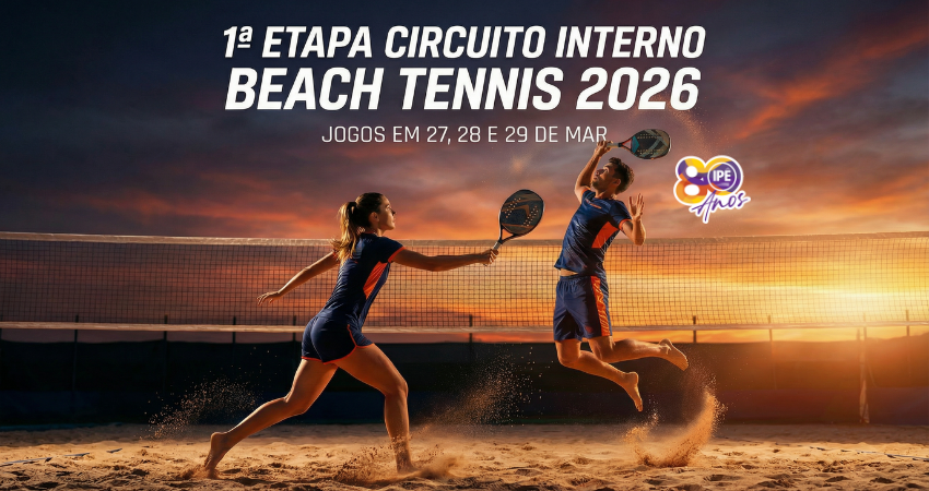 A 1ª Etapa do Circuito Interno de Beach Tennis 2026 está chegando para abrir a temporada com muita disputa, integração e grandes jogos nas quadras de areia do clube!